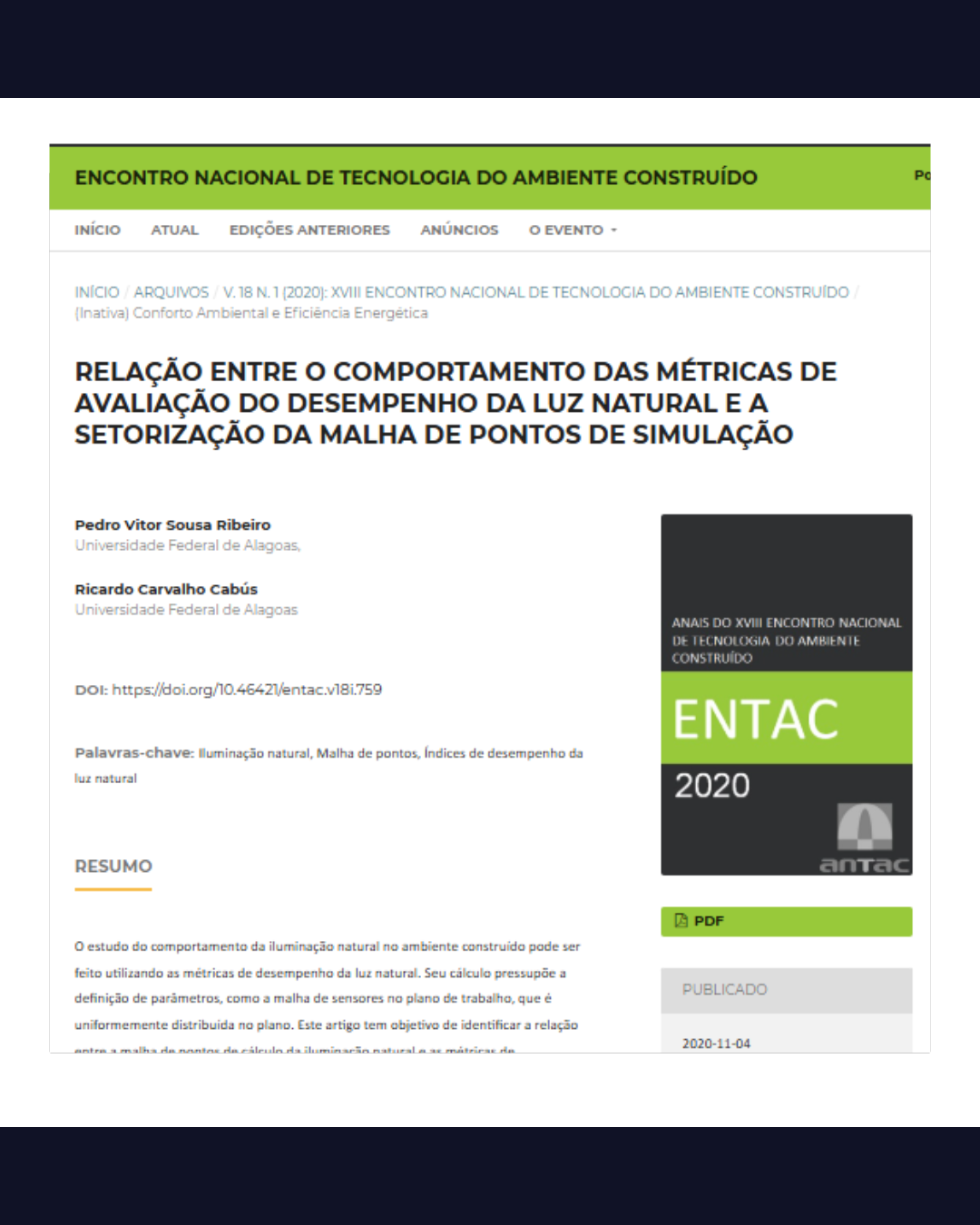 A utilização de ferramentas de estatística na análise de dados em estudos na área de conforto ambiental, ainda é algo pouco comum, mesmo tendo sido amplamente utilizada na elaboração de métodos experimentais e softwares. O artigo tem o objetivo de levantar a ocorrência da utilização de ferramentas de estatística em publicações nacionais na área de conforto luminoso, com ênfase na iluminação natural. Foram escolhidos os artigos de dois eventos da área de conforto ambiental, o ENCAC e o ENTAC, no período entre 2009 e 2019. Para cada artigo foi definido um índice denominado de potencial do uso de estatística, baseando-se nas variações de parâmetros de simulação ou de medição, para fins de comparação. Foram analisados um total de 233 artigos. Observa-se que há a crescente presença de pesquisas que se utilizam de simulação computacional, também de forma associada à medição. O uso da estatística ainda é baixo, perto dos 22%, enquanto que mais de 80% dos trabalhos possuem potencial de uso. Conclui-se que a utilização de tais ferramentas de análises de dados ainda é muito restrita, mas com grande potencial de uso.